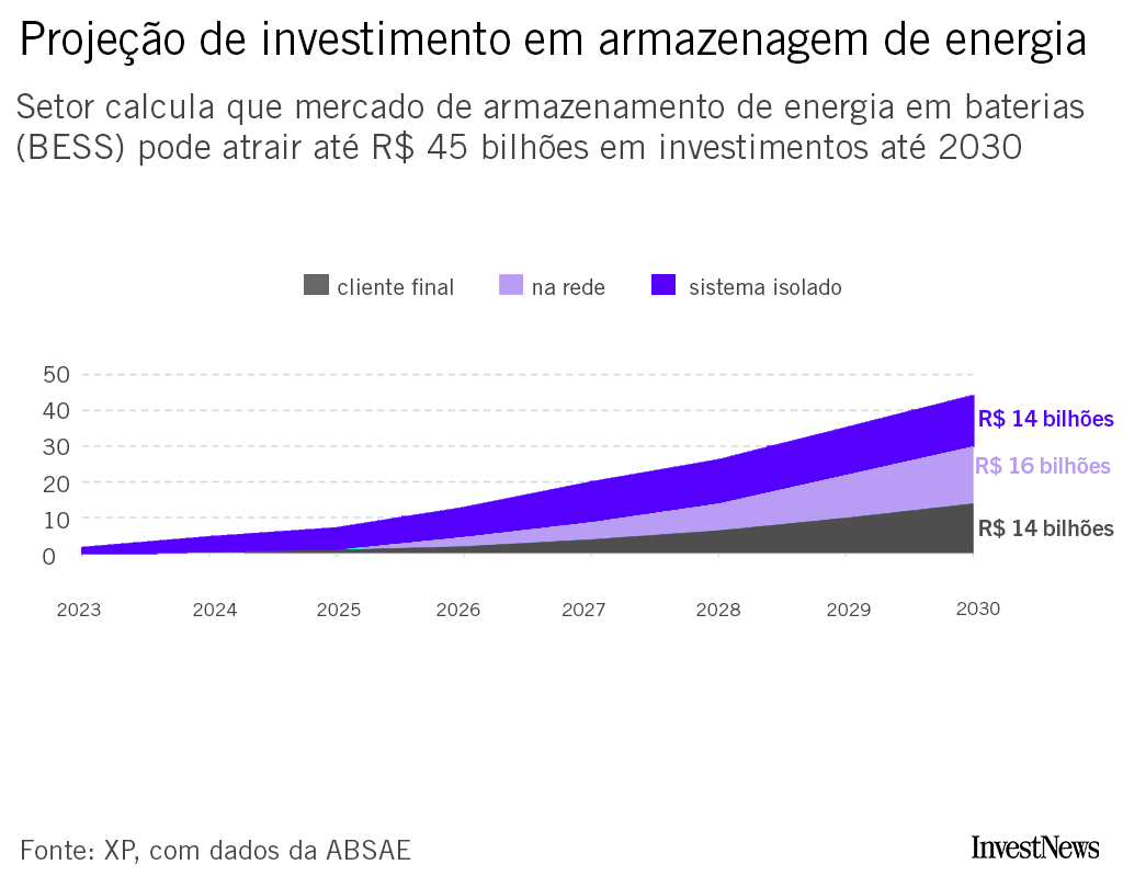 Não à toa, a expectativa é a de investimentos bilionários no setor nos próximos anos para que essa capacidade cresça. A Associação Brasileira de Soluções de Armazenamento de Energia (ABSAE) estima que o mercado brasileiro de armazenamento possa atrair até R$ 45 bilhões até 2030.