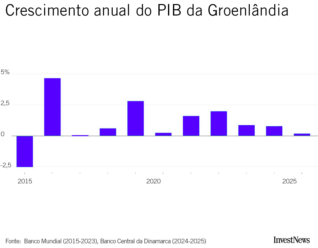 Esses bons tempos estão chegando ao fim. A economia groenlandesa cresceu 0,8% em 2024 e 0,2% em 2025, segundo o banco central dinamarquês. Parte dessa desaceleração está ligada à queda nos estoques de camarão, bem como à redução de preços. O aumento da temperatura do mar afeta a reprodução do camarão. Enquanto isso, houve um aumento na população de bacalhau, que se alimenta de camarão.